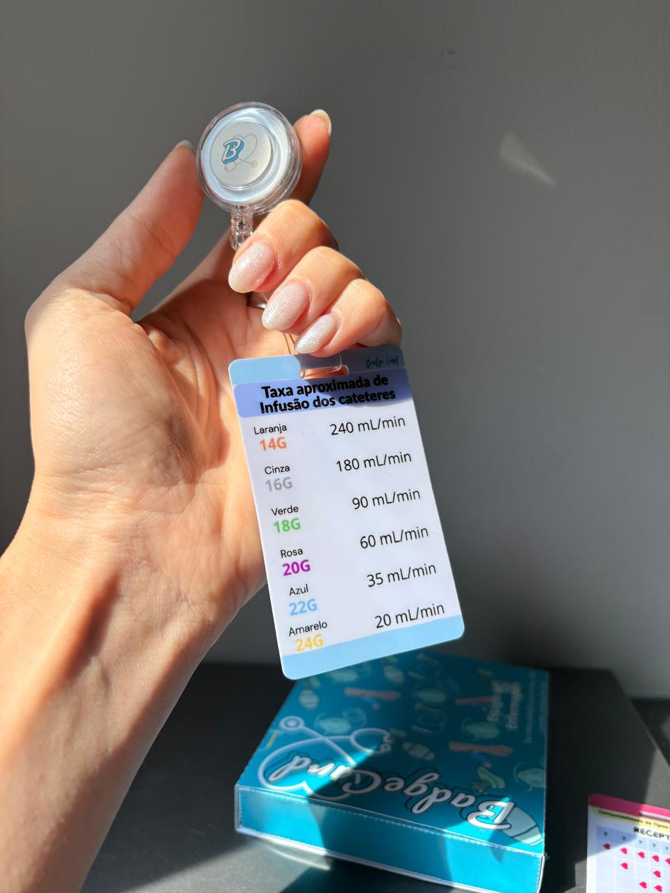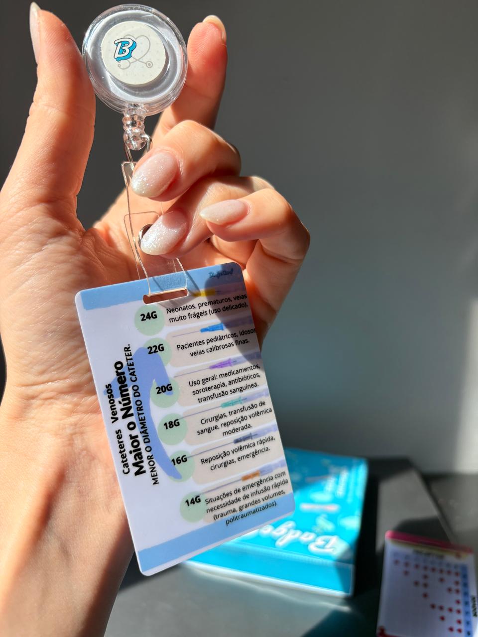 O Badge Card de Cateteres Venosos foi criado para simplificar o seu dia a dia no plantão, trazendo informações rápidas e indispensáveis sobre calibres, indicações e taxas de infusão — tudo em um design fofo e resistente, perfeito para o crachá.