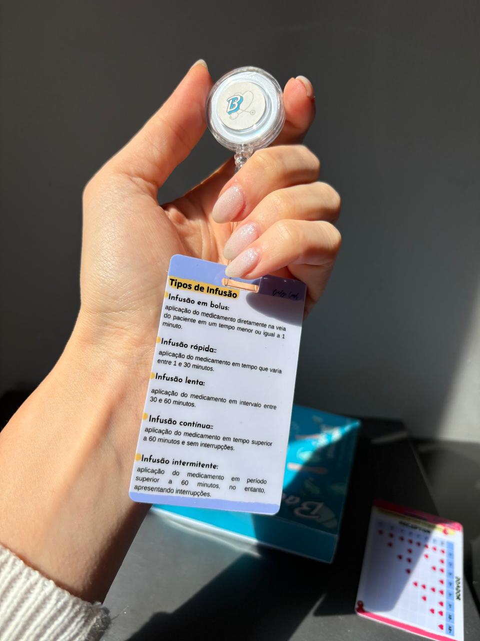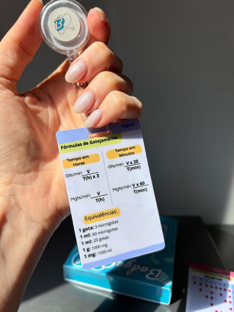 O Badge Card de Infusão foi feito para enfermeiros(as) que querem agilidade e segurança na hora de calcular e administrar medicações intravenosas.