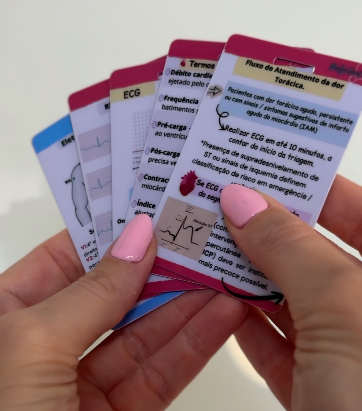 Este pack reúne os cards essenciais para agir com clareza, segurança e prioridade diante do paciente com dor torácica.